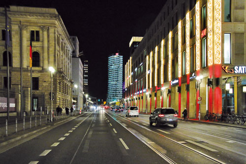 In Berlins Leipziger Straße wurden im Jahr 2000 „auf Vorrat“ Straßenbahnschienen verlegt; genutzt werden sie in dieser Form wahrscheinlich nie. Aufnahme: S. Göbel